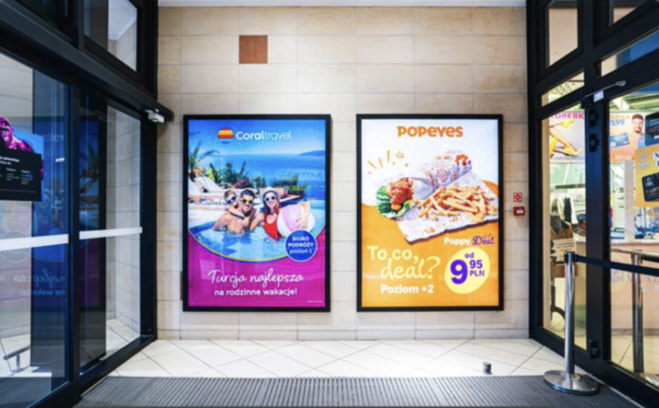Zacznij komunikację jeszcze przed wejściem do środka. Citylighty zlokalizowane przy wejściach skutecznie przyciągają uwagę klientów w kluczowym momencie – tuż przed rozpoczęciem wizyty.