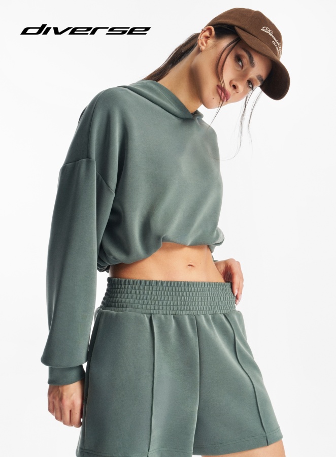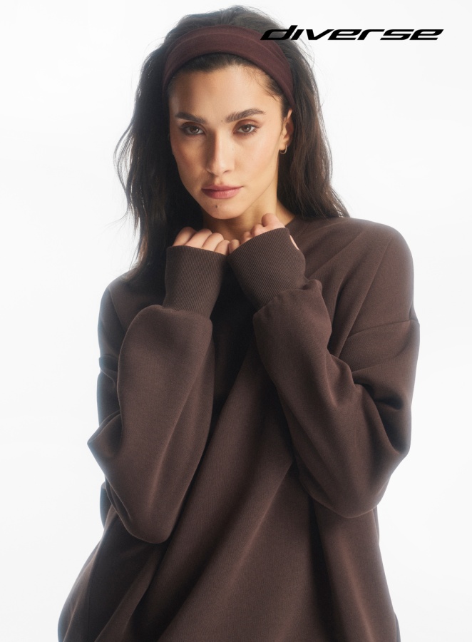 co dzień. Zapewniają komfort, swobodę oraz dodają pewności siebie. W kolekcji znalazły się zarówno propozycje typowo sportowe – topy, szorty i legginsy (prążkowane oraz gładkie), jak i bardziej uniwersalne elementy: T-shirty, bluzy oraz spodnie dresowe o luźniejszych krojach. Paleta kolorów? Modny, czekoladowy brąz, zgaszony niebieski przypominający zachmurzone niebo oraz szałwiowa zieleń, uzupełnione melanżową szarością i bielą. Materiały to mięsista 100% bawełna, a także przyjemne w noszeniu dzianiny z bawełną oraz wiskozą.