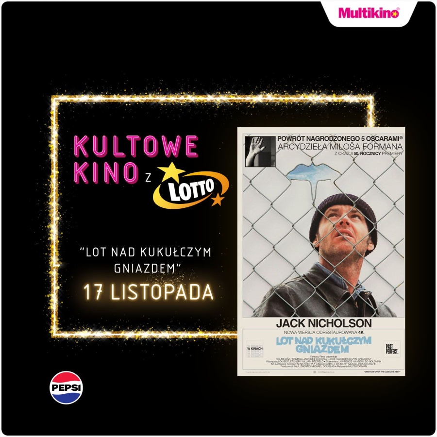 W kinach sieci Multikino w ramach cyklu „Kultowe Kino z Lotto” na widzów czeka dwa 17 listopada „Lot nad kukułczym gniazdem”. Bilety na pokazy można już nabyć w kasach kin, na stronie internetowej www.multikino.pl oraz przez aplikację mobilną.