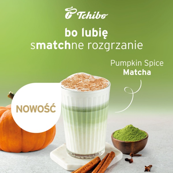 Zimą sięgnij po przyjemność, która rozgrzewa zmysły. Pumpkin Spice Matcha to elegancki, warstwowy napój na bazie aksamitnie spienionego mleka i sproszkowanych liści japońskiej, zielonej herbaty matcha. Łagodna słodycz dyni łączy się tu z korzennym charakterem cynamonu, imbiru i goździków, tworząc harmonijną, otulającą kompozycję. Całość wieńczy delikatna posypka z cynamonu, która dodaje aromatu już przy pierwszym łyku. Idealny wybór na zimowe chwile, gdy chcesz się zatrzymać i naprawdę się rozgrzać.