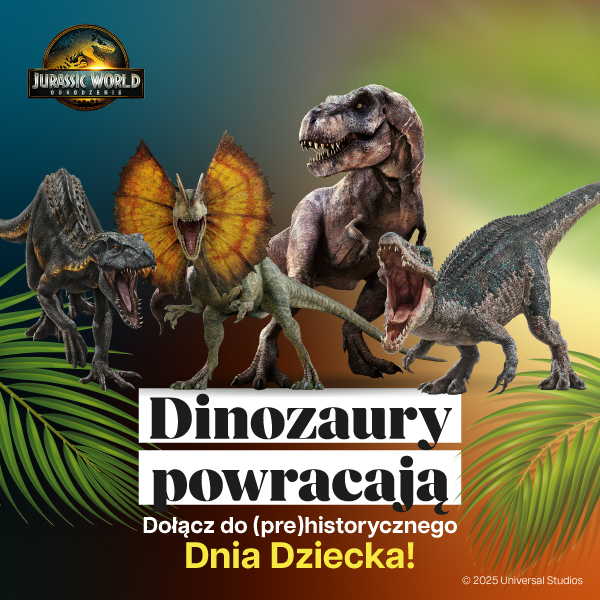- Konkursy z atrakcyjnymi nagrodami – wykorzystaj swoją wiedzę, refleks i spryt! Do wygrania bilety do Parku Rozrywki Zatorland oraz gadżety z filmu „Jurassic World: Odrodzenie”!